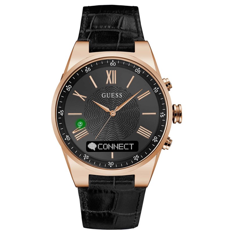 GUESS CONNECT Rose Gold Black Leather Strap C0002MB3
