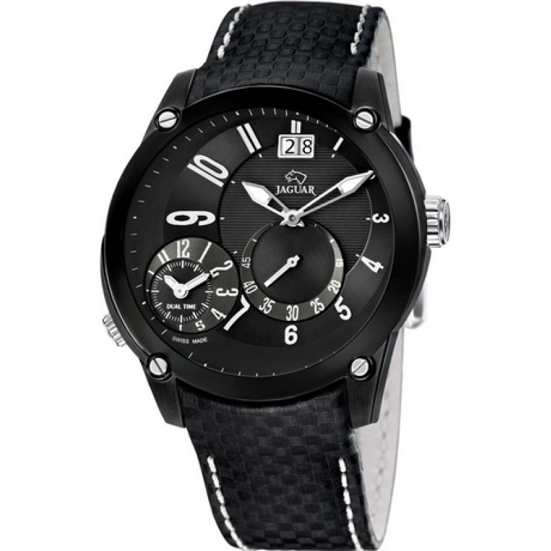 JAGUAR Dual Time Black Leather Strap J632/D